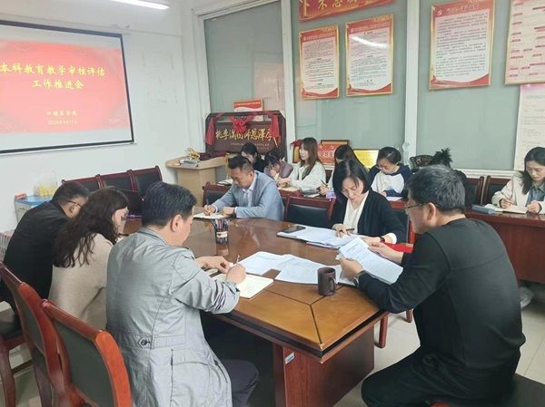 为扎实推进本科教育教学审核评估工作,417日,beats365官网 网页版召开本科教育教学审核评估迎评冲刺阶段工作专题布置会,党委书记陆坤主持会议,全体教师参加会议。