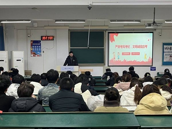 会议着重强调诚信是为人之道,立身之本,要求学生务必端正考风考纪,牢记考试纪律,恪守考试规定,培养自身正气,继承中华民族传统美德,践行社会主义核心价值观;要诚实面对自我,端正考试态度,注重学习方法,认真复习备考,带着扎实的知识踏入考场,以诚信之心展现诚信学风,守住内心的一份坚持,交付一份满意的答卷;提醒同学们做好防寒保暖,保持良好心态,积极应对期末考试。