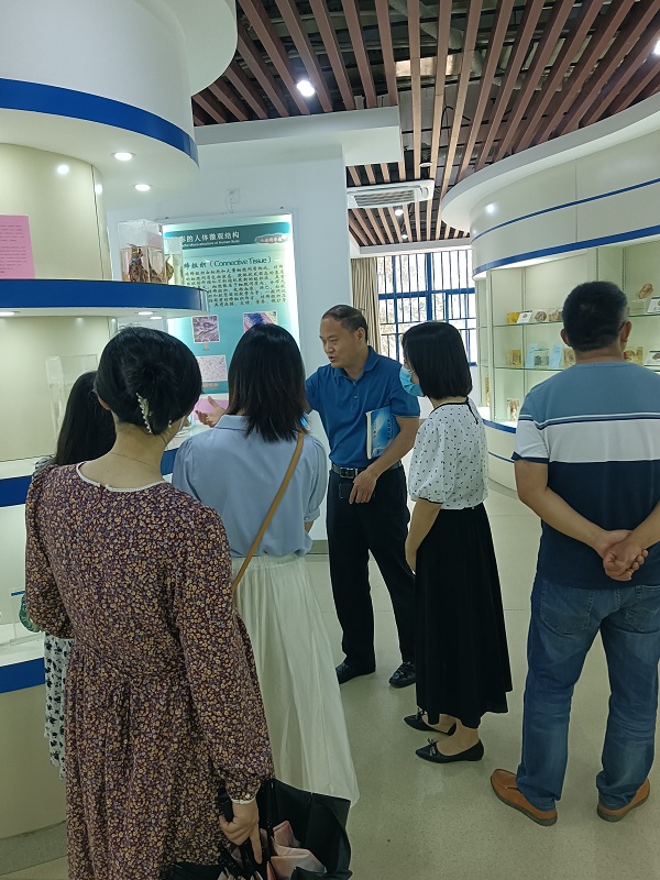 人体科学馆集教育教学、科学研究、人文教育和社会服务四大功能于一体,分为标本展区、医学人文展区、厚生堂三部分。各位教师先后参观了人体科学馆的人体结构图像、人体标本、塑化铸型、断层解剖等展品。基础医学院党总支副书记单增强亲自为教师们现场解说了人体的构造,揭示了生命的奥秘。各位教师通过馆内展品的参访,共同感悟生命的意义,并体会出医学既是自然科学,也是人文科学的内涵。单书记详细介绍了“厚生堂”的建立过程及其意义,以及捐献者的感人事迹,教师们深深震撼于遗体捐赠者的大爱无疆。