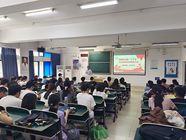 在教师培训会上,学院副院长向各位带队教师详细介绍见习实习的安排、具体内容和工作要求,强调大家要认真履行好带队教师职责,按照制定的专业见习实习计划完成带教任务,并且认真组织好学生的暑期社会实践活动。学生动员会上,学院副院长做暑期专业见习实习暨“三下乡”社会实践活动动员讲话,并向学生介绍了专业见习实习的内容和要求,学生年级负责人介绍了暑期“三下乡”社会实践活动方案,并对活动进行了细致布置。