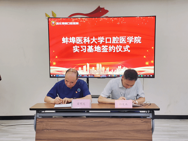 在淮北博爱口腔医院,孙文兵一行考察了医院诊疗环境和教学设施,雷明光院长及管理团队详细介绍了医院发展现状及实习见习学生培养情况。孙文兵书记对博爱口腔对学院教育教学及学生就业工作的支持表示感谢,并介绍了学院办学特色和人才培养成效。随后姜丽娜和张云波就本科生实习方案优化、临床能力培养、实习见习学生的管理等议题和医院展开深入交流。最后,孙文兵书记和雷明光院长现场签署实习合作协议。孙书记一行还专门召开了实习见习生座谈会,全面了解学生在院学习生活情况,对临床实践、安全管理等方面提出具体要求。