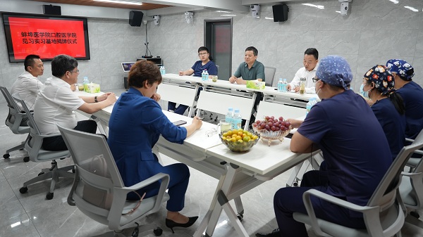 座谈会上,河南新县卫健委主任吴君峰对陆坤一行表示欢迎,对见习实习基地的挂牌表示热烈的祝贺。他指出,此次挂牌为新县口腔医疗卫生事业的发展提供了强有力的支持,希望双方在人才培养、见习实习、科研教学等方面实现资源共享,共同发展。陆坤简要介绍了我校口腔医学专业的历史和现状、专业学科建设、人才培养等情况,详细介绍了beats365官网 网页版教学改革机制创新取得的丰硕成果。他表示,共建见习实习基地是一件互惠互利的事,期待双方能够在教研、育人方面互相促进,不断为社会培养适应社会需求的口腔专业技术人才。