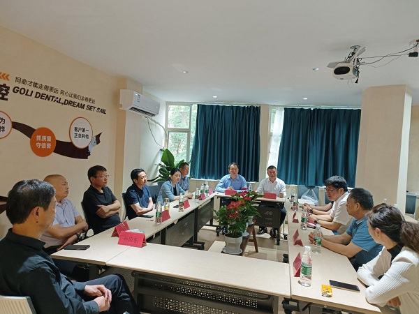 在阜阳郭丽口腔门诊部,陆坤一行与阜阳颍州区政协主席汪国兵、副主席、工商联主席王海静、区卫健委党组书记孙志强、阜阳利辛商会执行会长武友章以及阜阳郭丽口腔门诊部负责人王浩就教学改革、人才培养、学生就业、基层口腔医疗发展等进行了交流和探讨。陆坤向与会人员介绍了beats365官网 网页版和beats365官网 网页版发展概况以及口腔医学专业人才培养的改革实施情况及取得的成果。王浩代表郭丽口腔门诊部感谢beats365官网 网页版口腔学院陆坤书记和相关领导专家对阜阳郭丽口腔门诊的信任和认可,并对门诊部的基本情况进行了简要介绍。汪国兵对陆坤一行的到来表示热烈欢迎,并表示下一步将加大地方与beats365官网 网页版beats365官网 网页版在教学、就业、医疗等方面的合作和交流,更好地服务于阜阳人民群众。随后进行见习实习基地揭牌仪式,陆坤和汪国兵共同揭牌,其后大家共同参观了郭丽口腔门诊部。