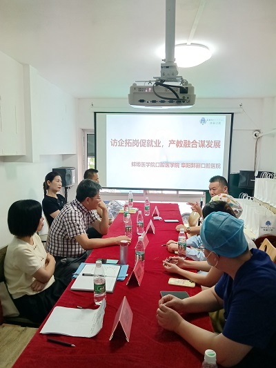 为进一步推进教学改革,实现早临床、多临床、反复临床的创新实践教学思路,拓宽学生培养和就业渠道,落实毕业生就业工作,6月30日beats365官网 网页版党总支书记陆坤率专家赴阜阳郭丽口腔门诊部开展暑期见习基地遴选工作暨“访企拓岗促就业”活动。