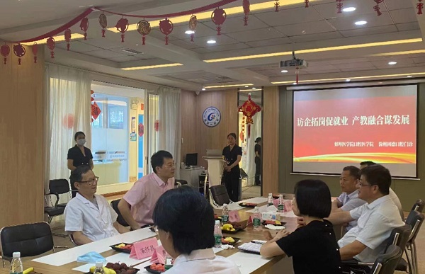 在滁州固德口腔医院会议室,固德口腔医院徐晓院长介绍了医院发展历史、科室建设、特色医疗、未来规划、人才需求计划以及学生见习情况等。陆坤介绍了去年见习活动取得的成绩,今年优化的措施,提出双方进一步合作内容,并就学生见习、毕业生就业供需对接进行了深入交流。