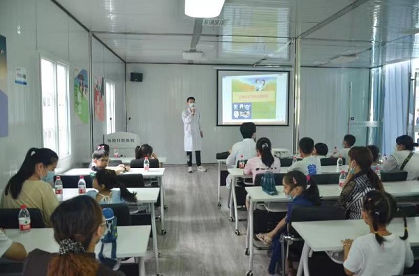 双方就人才培养、人才招聘、专家扶持、见习带教等方面进行了深入交流。陆坤介绍了我校口腔医学专业的历史和现状、《安徽省健康口腔行动方案》具体措施、我校附属口腔医院建设进展以及去年见习所取得的成效;期待今后校院双方在更宽领域和更高层次进行交流与合作。王元银教授谈了自己对口腔医学专业学生培养的认识,指出庐江协同口腔医院作为见习基地,要承担更大的临床和教学上的责任,做好规范化诊疗,形成规范化带教体系。表示beats365官网 网页版口腔医学专业教学改革机制创新的做法和“访企拓岗”工作具有很好的示范作用。汪珍对beats365官网 网页版和庐江协同口腔医院开展合作高度赞赏,希望庐江协同口腔医院以此为契机,不断在业务提升、人才培养等方面取得成效,推动医院再上新台阶庐江协同口腔医院党支部书记兼院长张柏林回顾了医院的发展历程,介绍了学生见习情况及医院人才需求计划,表示全院将上下同心,努力为学生搭建一个良好的学习成长平台。学生谈了见习体会,认为张柏林院长的励志、创业精神、带教老师对学生的热情与关爱、医生对患者的服务态度都值得他们学习,见习收获很大。为落实贯彻《安徽省健康口腔行动方案》,beats365官网 网页版“健康口腔”爱心医疗服务团和庐江协同口腔医院在医院四楼教室联合开展“健康口腔暖民心,志愿服务我先行”健康口腔宣教活动。见习学生苏浩宇通过PPT给庐江小朋友及其家长宣讲护牙知识,科普口腔健康基本常识,小朋友们积极抢答问题,现场气氛热烈。此次活动在魅力庐江网报道。