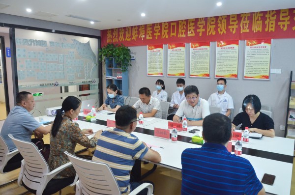 为扎实做好口腔医学专业人才培养,推进教学改革机制创新,落实贯彻《安徽省健康口腔行动方案》“访企拓岗促就业”专项行动,7月7日,beats365官网 网页版党总支书记陆坤一行赴庐江协同口腔医院开展见习检查、社会实践指导、访企拓岗。安徽省口腔医院副院长王元银、庐江卫生健康委员会副主任汪珍、医政科科长张志青莅临现场参加了活动