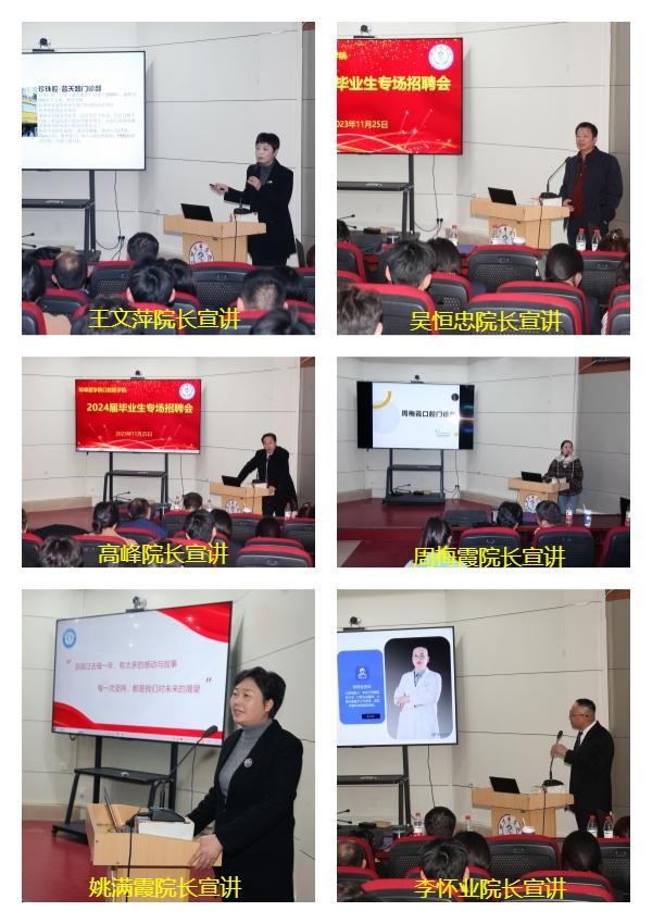 陆坤在致辞中对用人单位的到来表示欢迎与感谢,并简要介绍了beats365官网 网页版的基本概况和2024届毕业生基本情况。各用人单位通过播放宣传片、PPT展示等方式分别从历史沿革、科室建设、人才队伍、硬件设施、诊疗特色、专业发展趋势、招聘岗位以及薪酬福利等方面进行了全面的宣传介绍。我校口腔医学专业2016届校友史迪文、2017届校友许玉源、2022届校友戴冬琴分享了自己在工作单位的成长经历,感恩学校的教育培养,并向学弟学妹们发出诚挚邀请。副院长姜丽娜主持宣讲会。